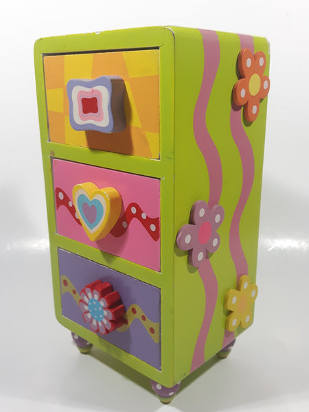 Colorful Three Drawer 8 1/2" Tall Wood Trinket Jewelry Box