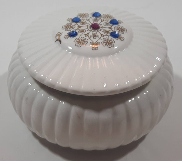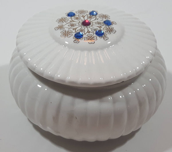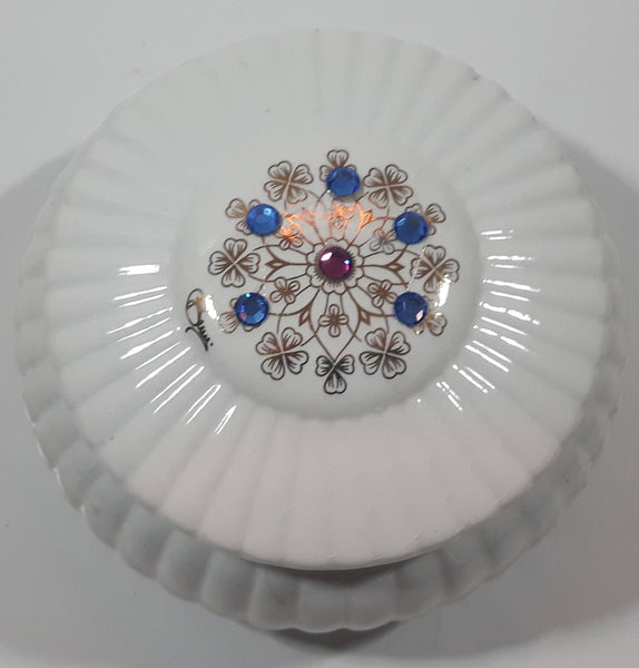 Creazioni Originali Porcelain White With Blue and Red Trinket Box Made in Italy Missing One Stone