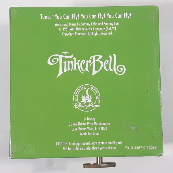 Disney Parks Authentic Original Tinkerbell Green Wind Up Music Box Plays "You Can Fly! You Can Fly! You Can Fly!"