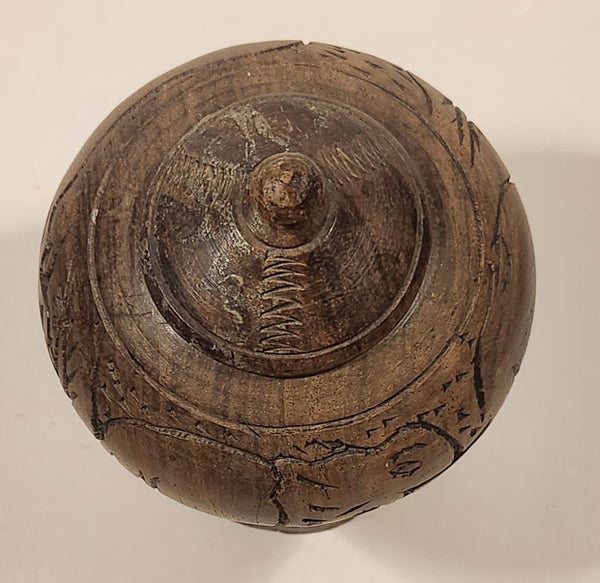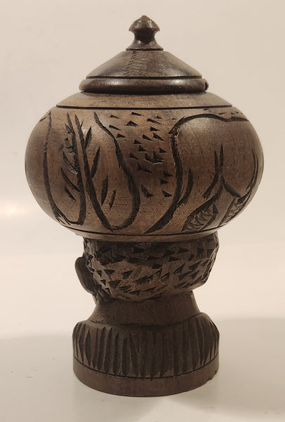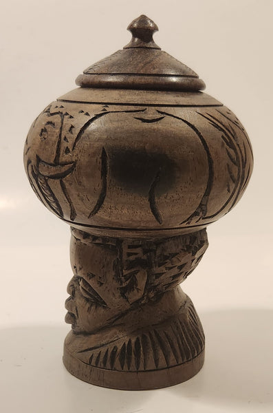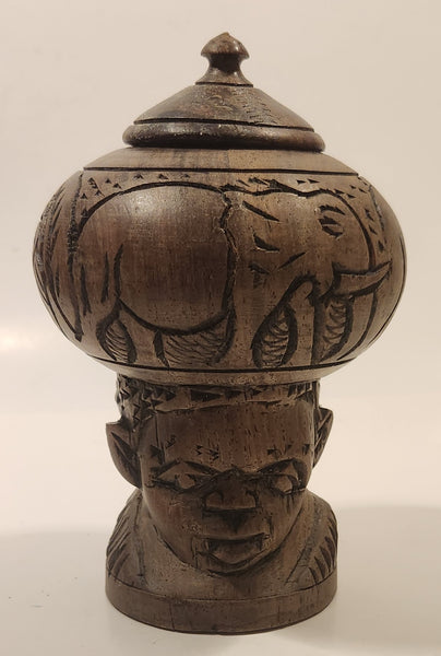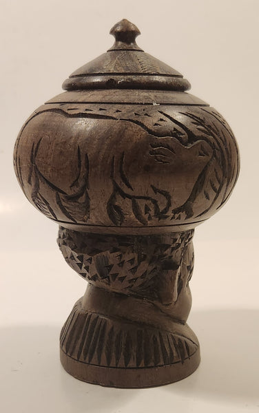 Elephant Rhinoceros and Head Bust 6 1/2" Hand Carved Wood African Sculpture Trinket Box