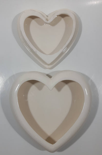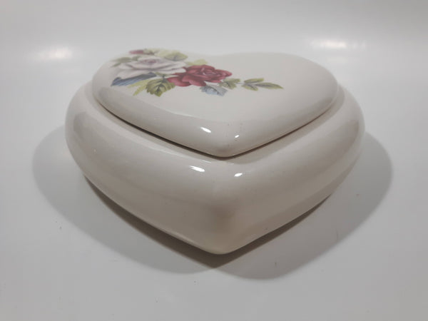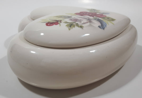 Heart Shaped White and Red Flower Themed Ceramic Trinket Box