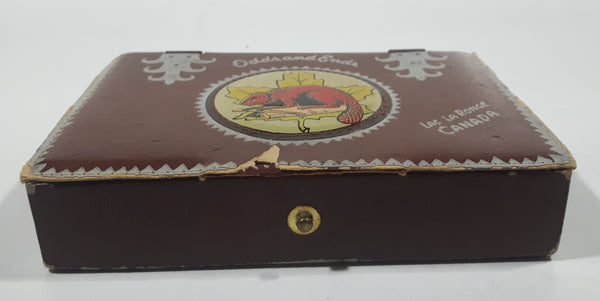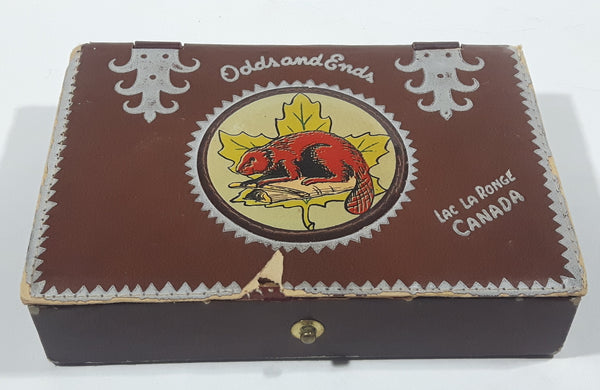 Rare Vintage Lac La Ronge Canada Odds And Ends Beaver On A Log Maple Leaf Brown Vinyl Covered Trinket Box