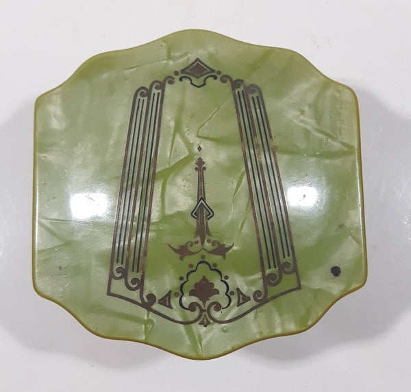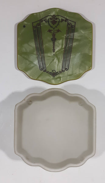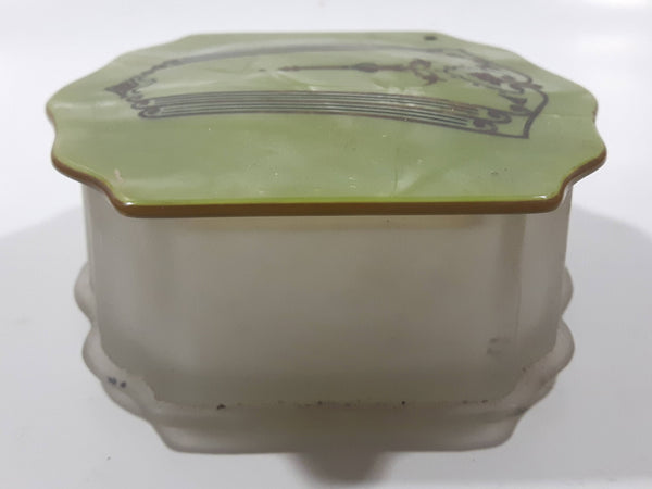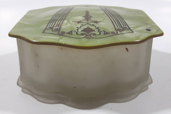 Vintage Art Deco Bakelite Lid Green and Frosted Glass Base Trinket Box