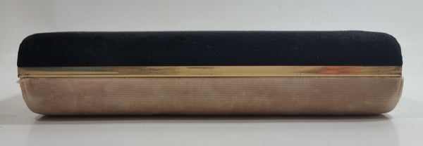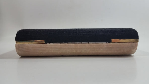 Vintage Continental Black and Light Salmon Pink Felt Covered Cream White Lined Jewelry Dresser Box