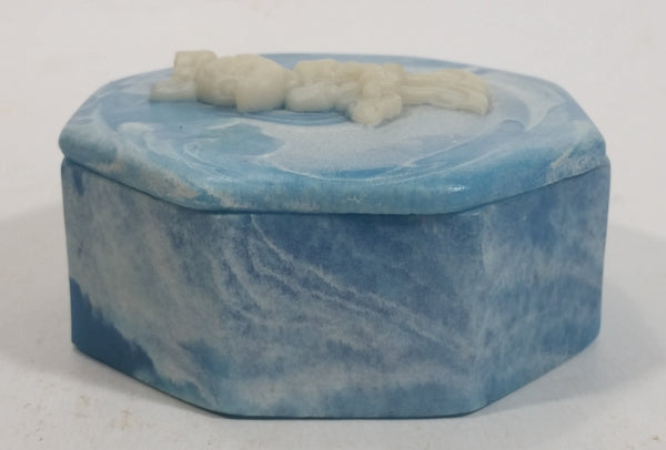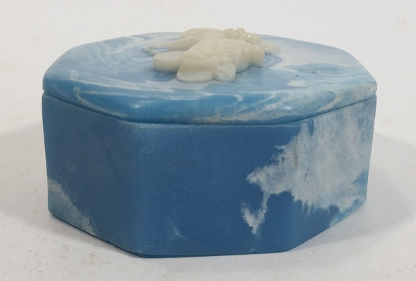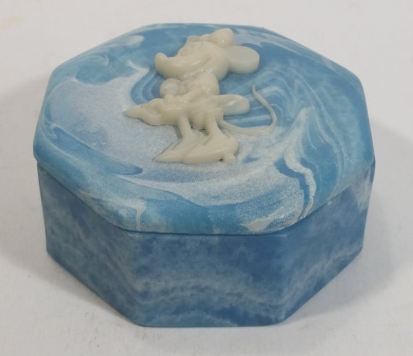 Vintage Incolay Disney Minnie Mouse Blue Octagon Shaped Marble Like Lidded Trinket Box Cartoon Collectible