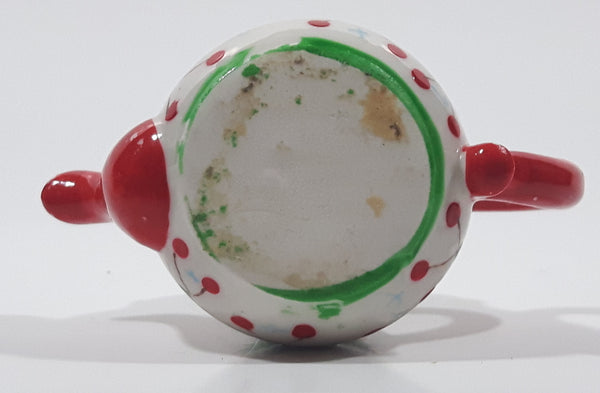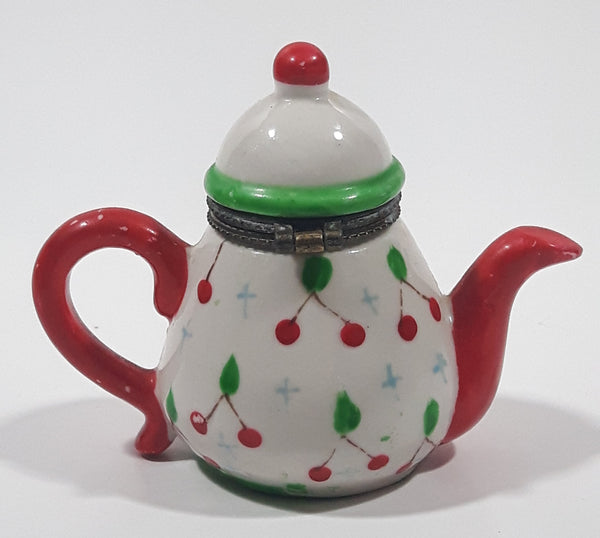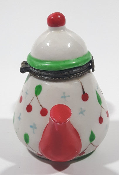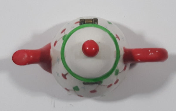Vintage Miniature Red White Green Teapot Shaped Butterfly Clasp 2 3/4" Tall Trinket Jewelry Box