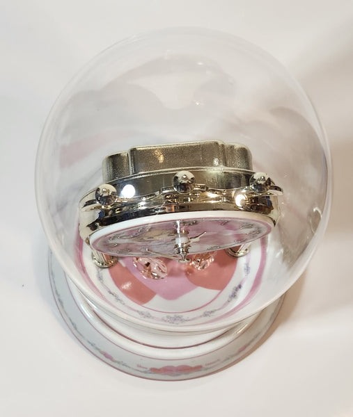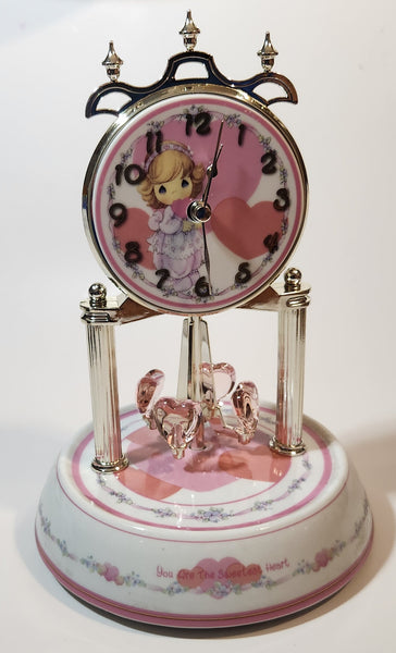 2003 Precious Moments You Are The Sweetest Heart White and Pink Porcelain and Glass Anniversary Dome Clock