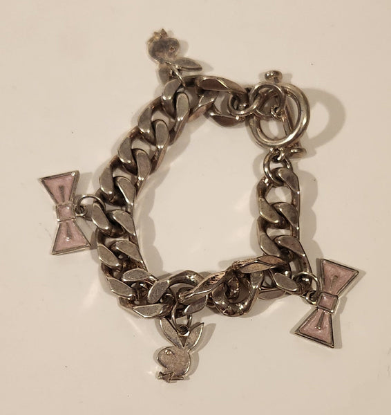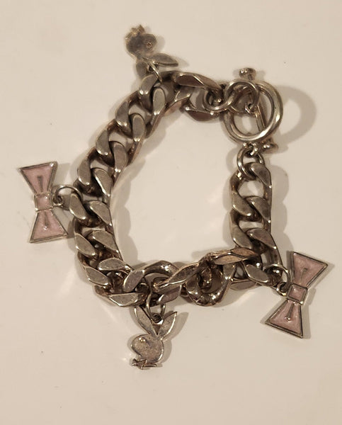 2007 Playboy Bunny and Pink Enamel Bow Metal Bracelet