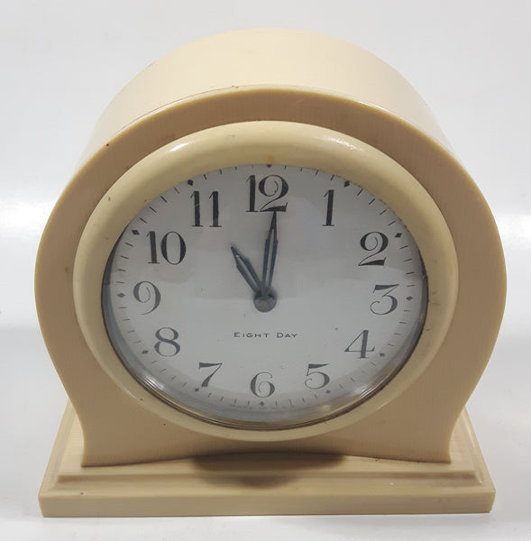 Antique Ivory PY-RA-LIN Eight Day Cream Colored Arched 5" Tall Wind Up Alarm Clock Made in U.S.A.