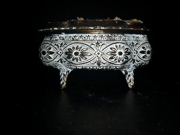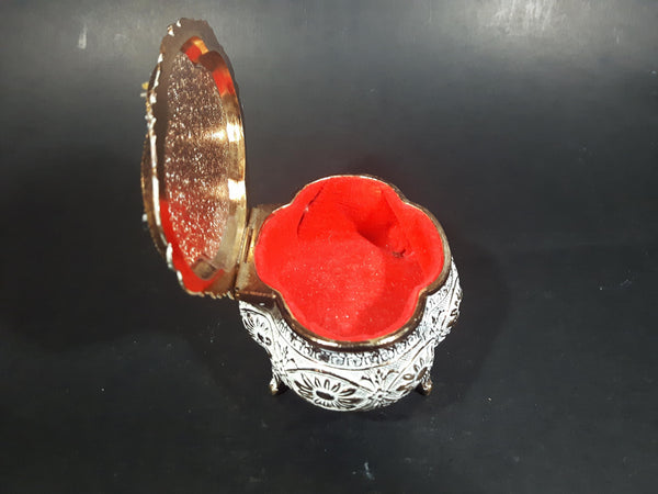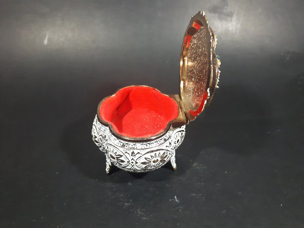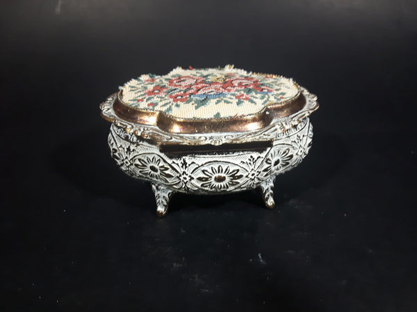 Beautiful Vintage Mele Tapestry Topped Gold Tone Trinket Box Made in Japan
