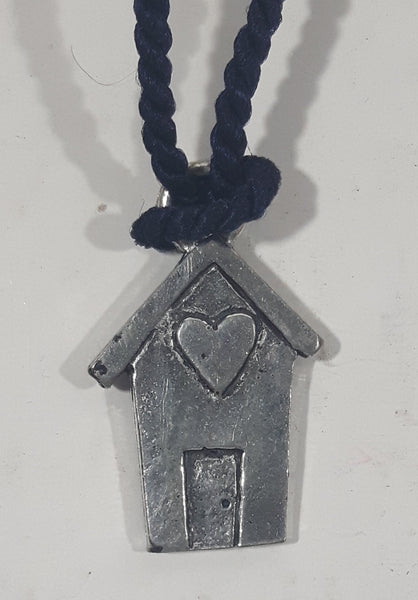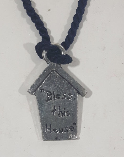 Bless This House Small House Shaped Charm Pendant on Black String