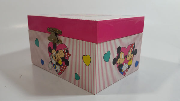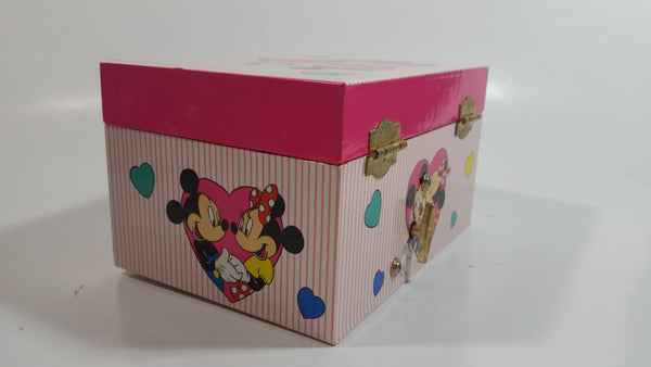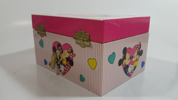 Disney Mickey Mouse and Minnie Mouse Pink Felt Lined Wind Up Musical Keepsake Trinket Box Plays "I Want To Be Loved By You"