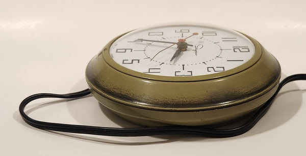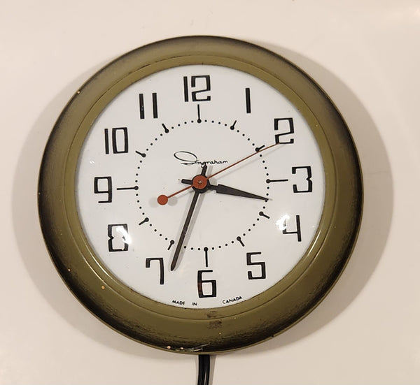 Retro Mid-Century Ingraham Olive Green 7" Round Electric Plug In Wall Clock Made in Canada