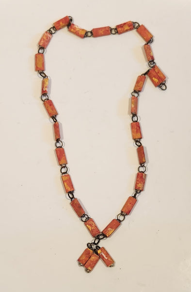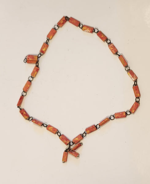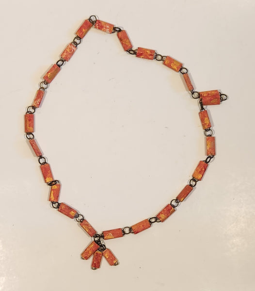 Rolled Orange Paper Chain and Metal 24" Necklace