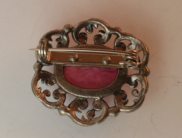 Vintage 1960s Pink Cabochon Brooch Pin Metal