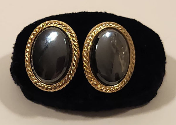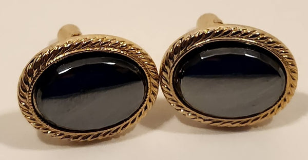 Vintage Black Mirrored Moonglow Iridescent Gemstone Gold Tone Cufflinks