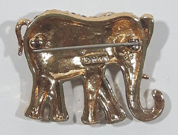 Vintage Butler Elephant Shaped Sparkling Rhinestone Golden Tone Metal Brooch Pin