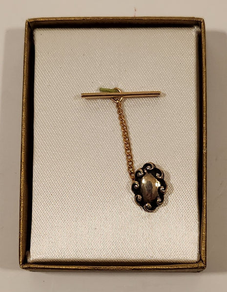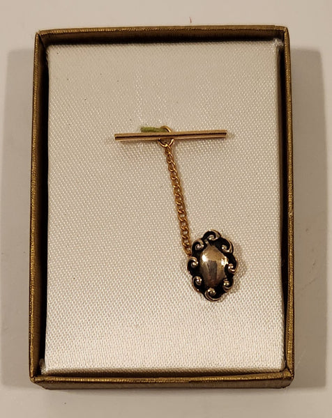 Vintage Gold Tone and Silver Look Oval Rimmed in Black Enamel Tie Tack