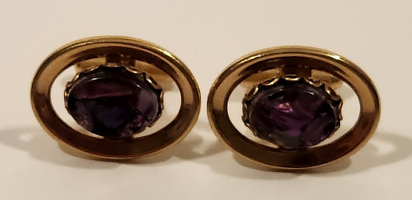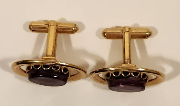 Vintage Purple Amethyst Lucite Oval Shaped Gold Tone Cufflinks
