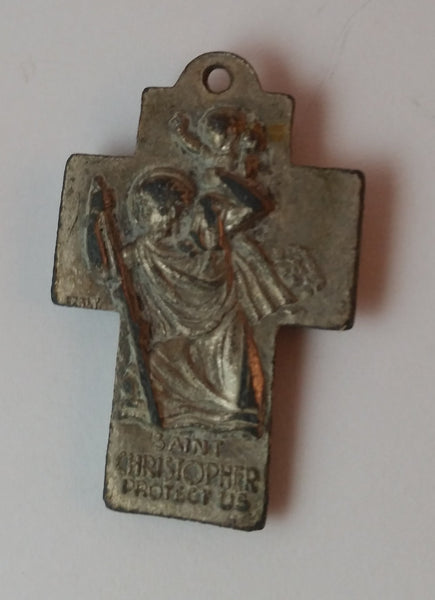Vintage "Saint Christopher Protect Us" Jesus Mary and Joseph Cross Rosary Pendant Italy