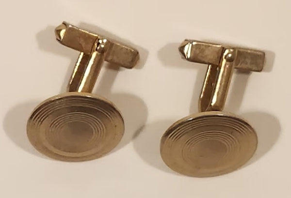 Vintage Swank Round Grooved Gold Tone Cufflinks