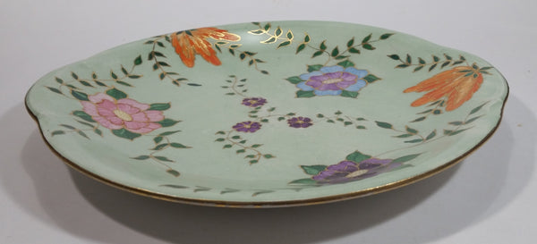 Beautiful 1954 Johnson Bros. Hand Painted Victorian Pattern Light Green with Pink, Purple, Blue Flowers Fine China Serving Platter - Signed J. Greenhow