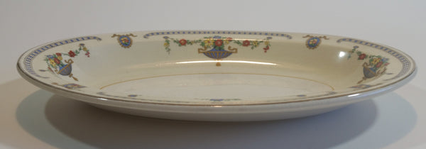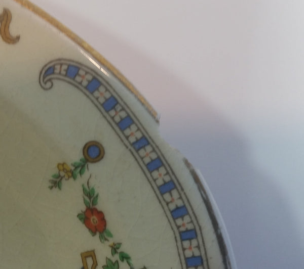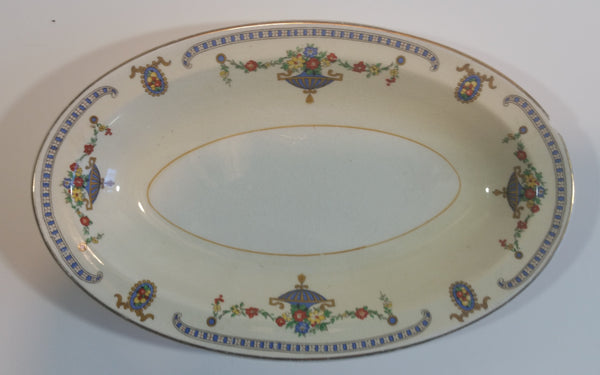 Red, yellow, blue flower urn decoration pattern with gold trim.