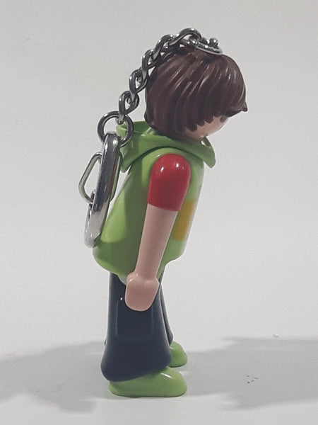 2006 Geobra Playmobil Speed S Boy in Green and Red with Black Pants 3" Tall Toy Figure Keychain