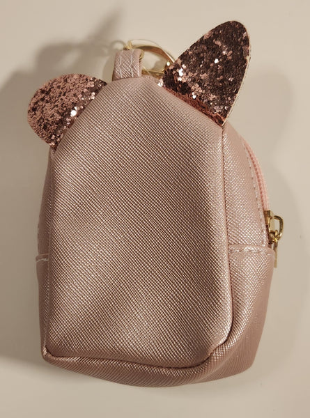Claire's Mini Pink Backpack Shaped Purse with Glitter Kitty Cat Ears Toy Key Chain Clip On
