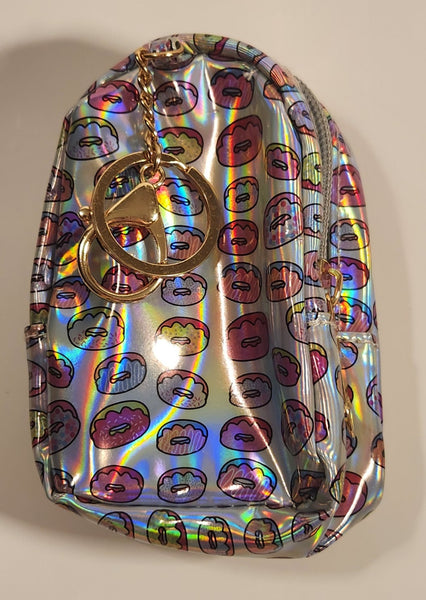 Mini Silver Donut Themed Backpack Shaped Purse Toy Key Chain Clip On