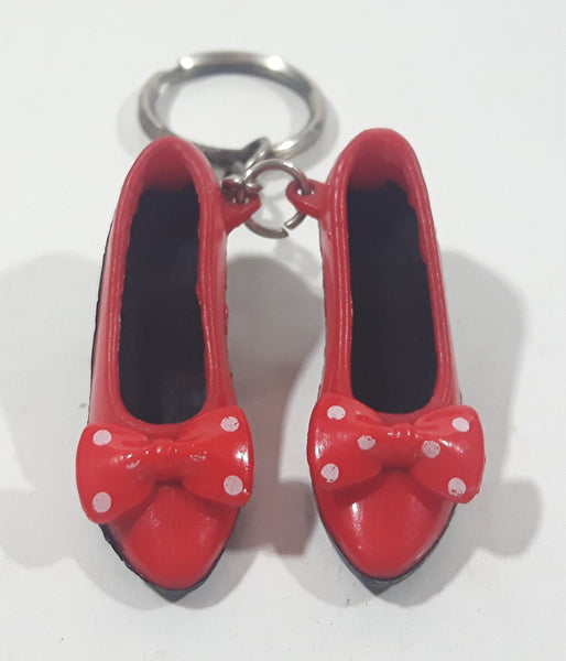 Minnie Mouse Style Red and Black High Heel Shoes with Red White Polka Dot Bow Tie 2" Long Key Chain
