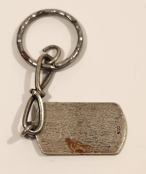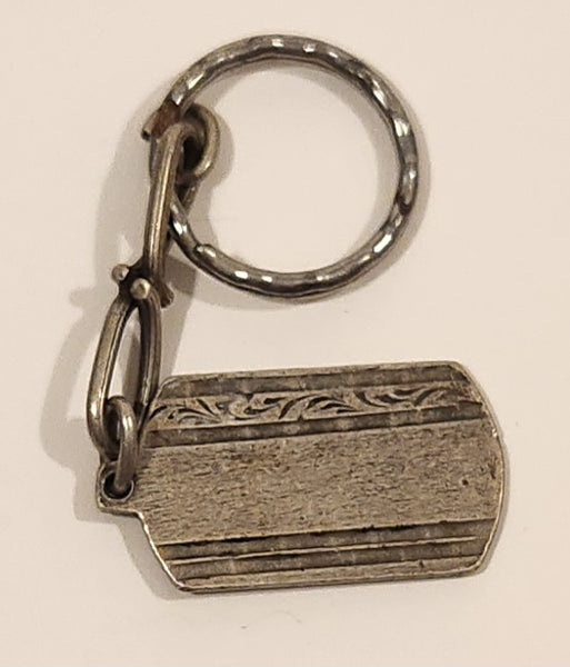 Silver .900 Ornate Engraved Metal Fob Keychain Ring