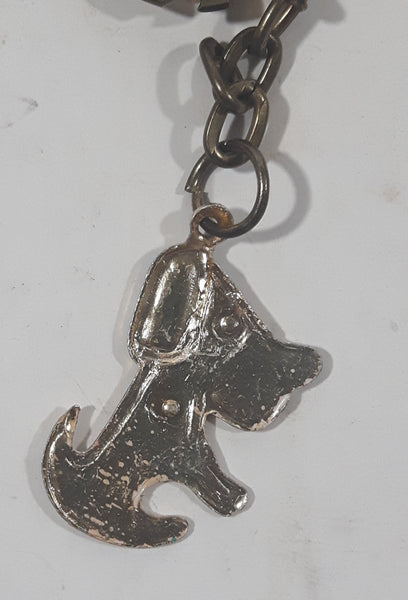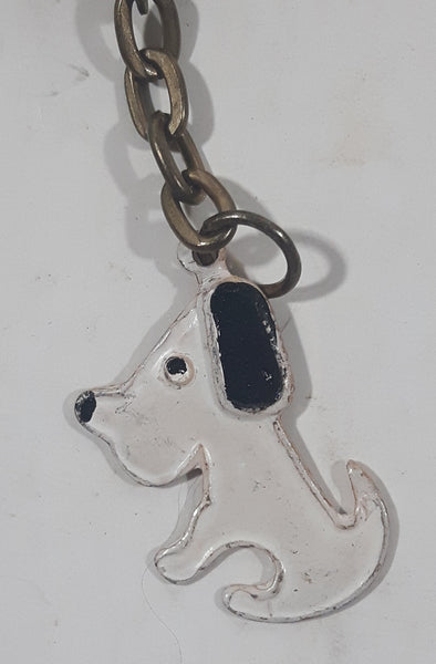 White Sitting Dog Small Enamel Metal 1" x 1" Key Chain