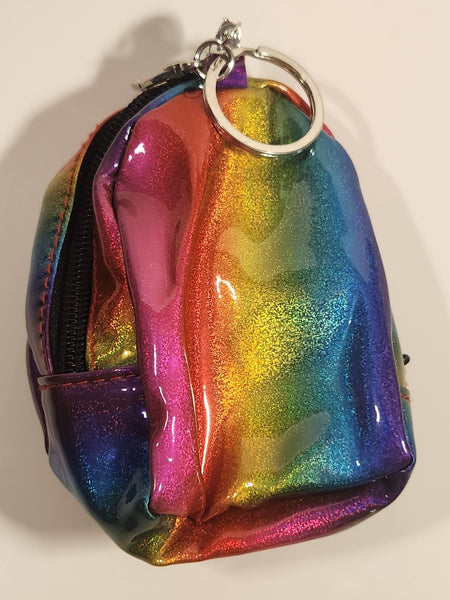 Mini Rainbow Themed Backpack Shaped Purse Toy Key Chain Clip On