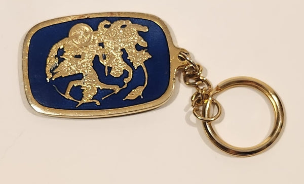 Thailand Dark Blue Enamel Gold Look Metal Fob Keychain Ring