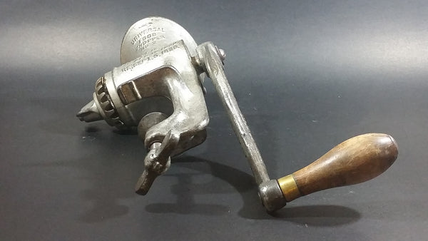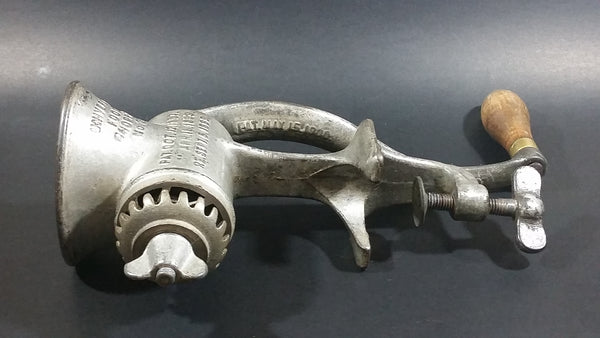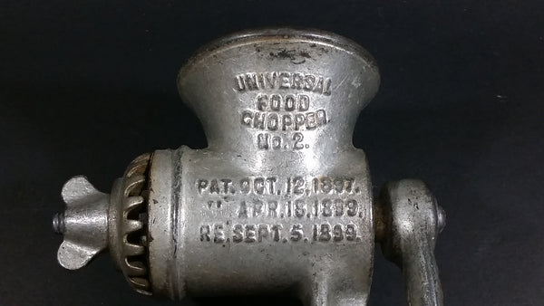 Antique 1899 Landers, Frary & Clark Cast Iron Universal Food Chopper No. 2 Hand Crank Wooden Handle