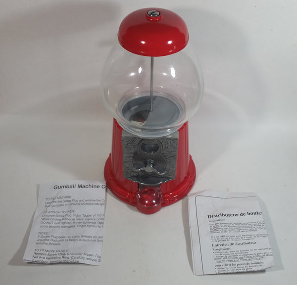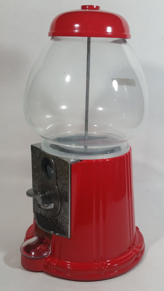 Antique Style Metal and Glass Globe Red Colored 11 1/2" Tall Candy Gumball Dispenser With Original Box
