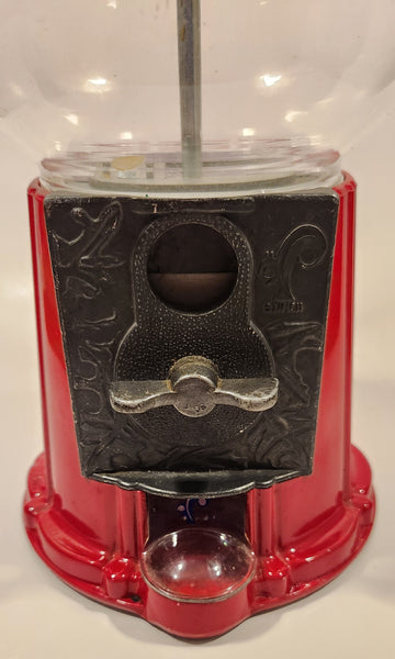 Vintage Continental Gumball Candy Dispenser Machine Coin Bank Metal with Glass Globe 11" Tall
