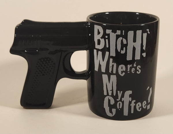 Just Funky Bitch! Where's My Coffee? Black Ceramic Coffee Mug Cup with Gun Handle