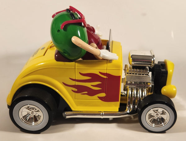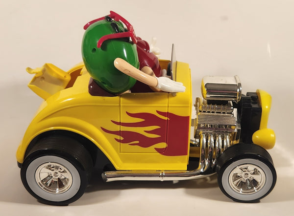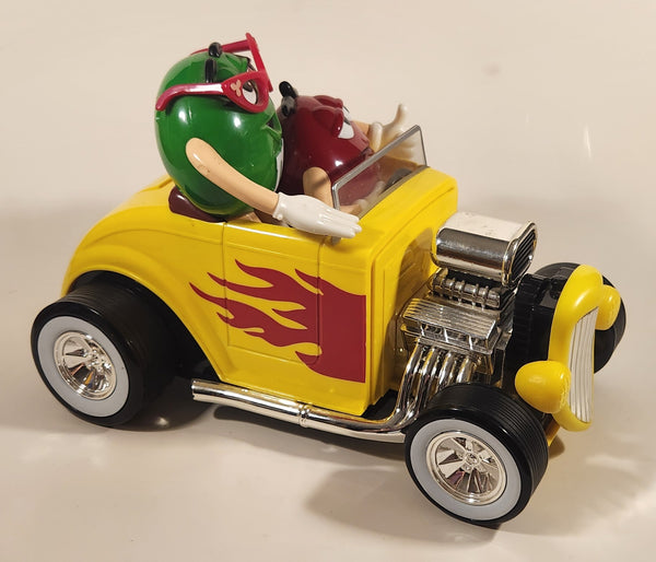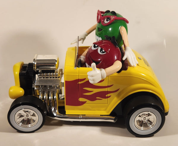 M & M's Yellow Hod Rod Shaped Candy Dispenser Machine with Red and Green Characters