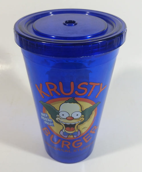 Universal Studios Fox The Simpsons Krusty Burger Restaurant "Over Dozen's Sold" Blue Plastic Cup with Lid
