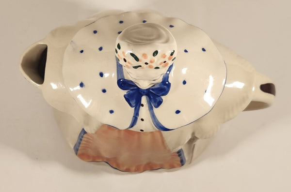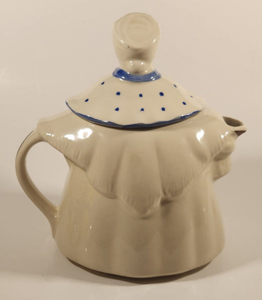 Vintage 1940s Granny Ann USA White and Blue Grandma Tea Pot with Lid