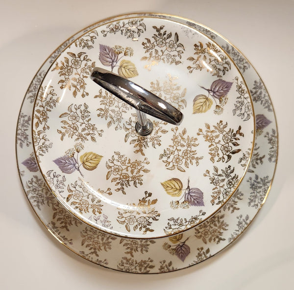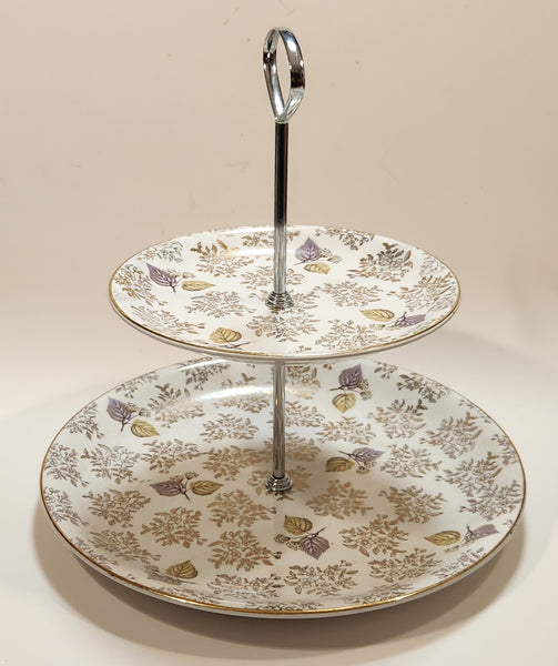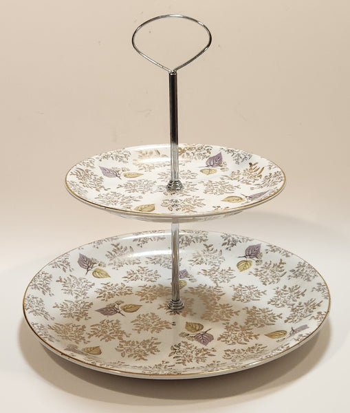 Vintage Barratt's Delphatic Tableware Ironstone England 9 1/2" Tall Two Tier Cupcake Desert Stand Serving Tray