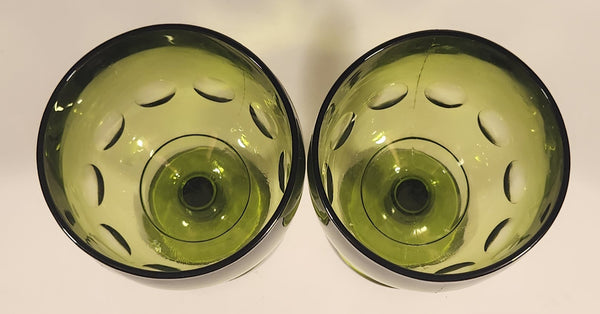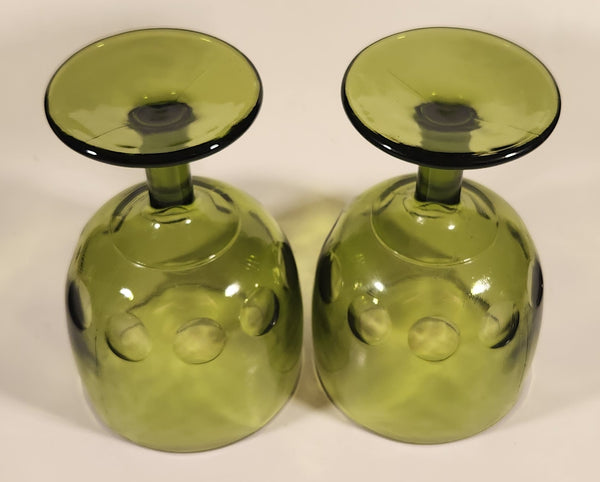 Vintage Bartlett Collins Thumbprint Avocado Green Glass Pedestal Cup Goblets Set of 2