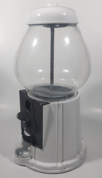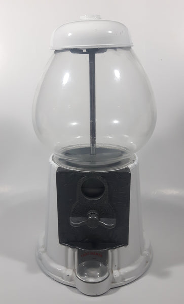 Vintage Continental Gumball Machine Candy Dispenser 11" Tall Metal Coin Bank with Glass Globe Rare White Version