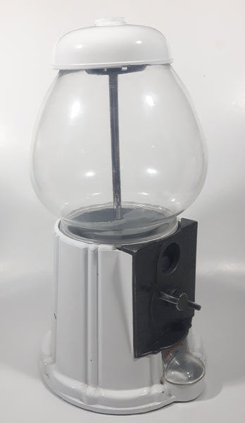 Vintage Continental Gumball Machine Candy Dispenser 11" Tall Metal Coin Bank with Glass Globe Rare White Version