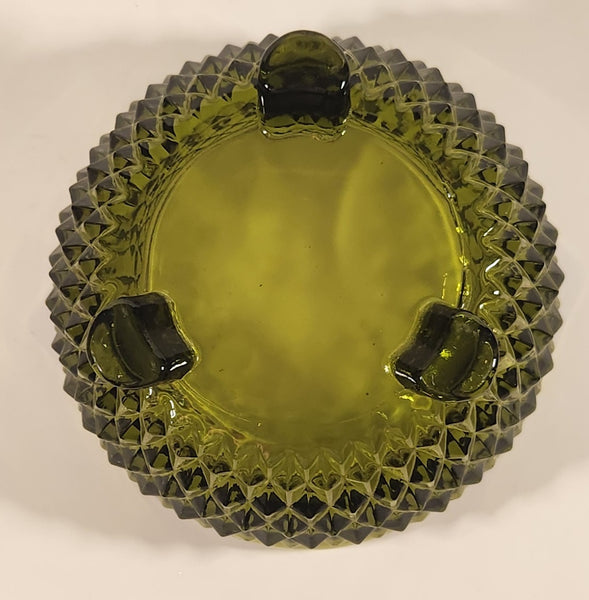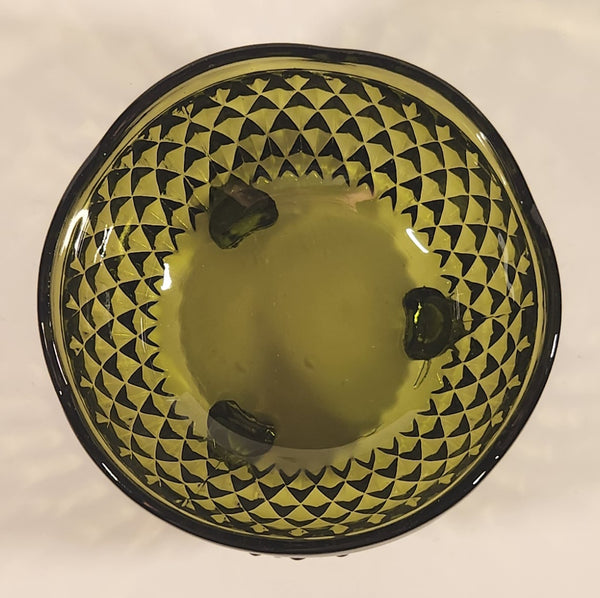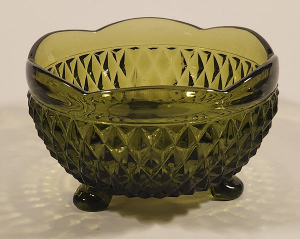 Vintage Indiana Glass Diamond Point Avocado Green Tri-Footed Candy Dish