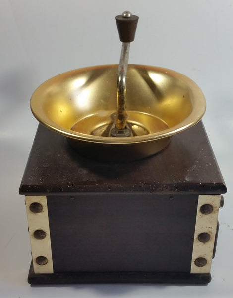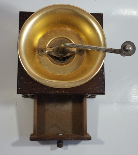 Vintage Japanese Made Wood and Brass Metal Coffee Grinder Mill