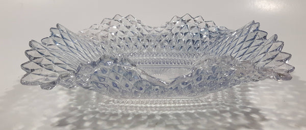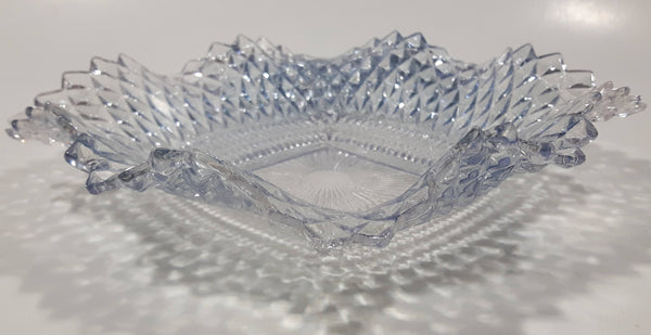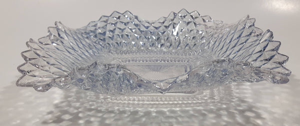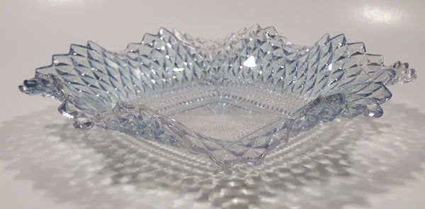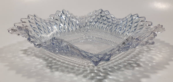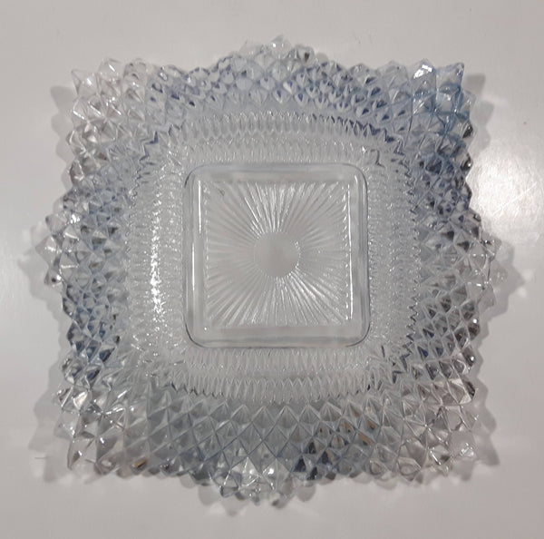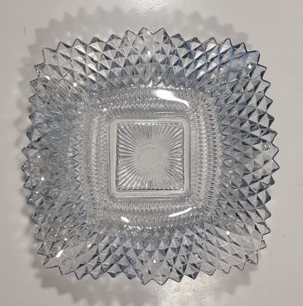 Vintage Light Blue Tinted Diamond Cut Crystal 7" x 7" Square Shaped Glass Candy Dish