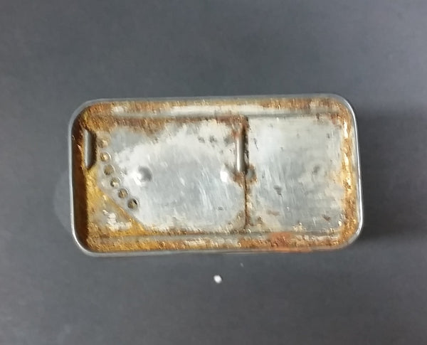 Small dent and scratch on the one side, some rust on the top, minimal wear, and still NEARLY FULL to the top.